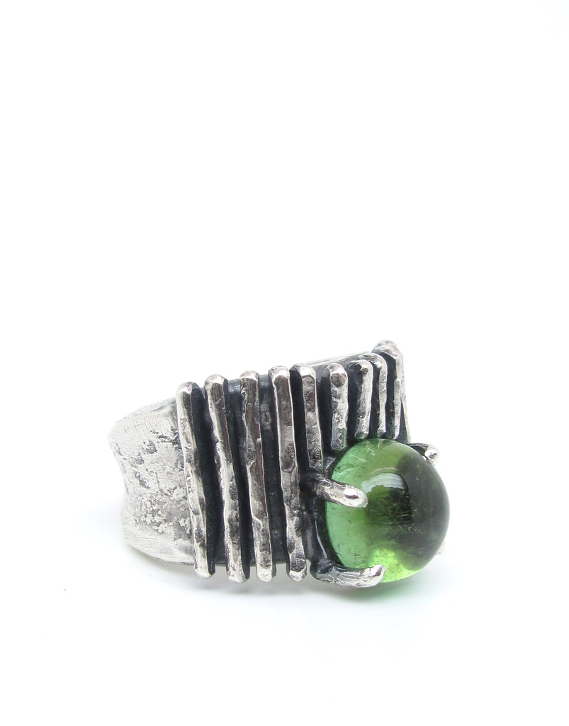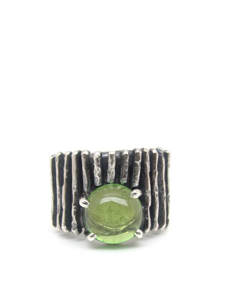 Hammered Lines with Round Green Tourmaline Stone